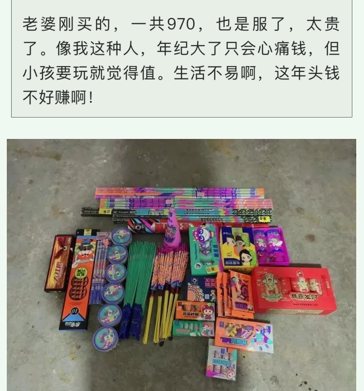 小孩子玩鞭炮都高兴,但是鞭炮真心贵,特别是今年过年特别贵。每次带着小孩子去店里,一买就上百,而且一下就玩完了,过年拜年小孩子多,一群孩子去店里选鞭炮的场景是孩子们兴高采烈,大人们哭笑不得。小孩是高兴了,但这钱用得也挺心疼的。